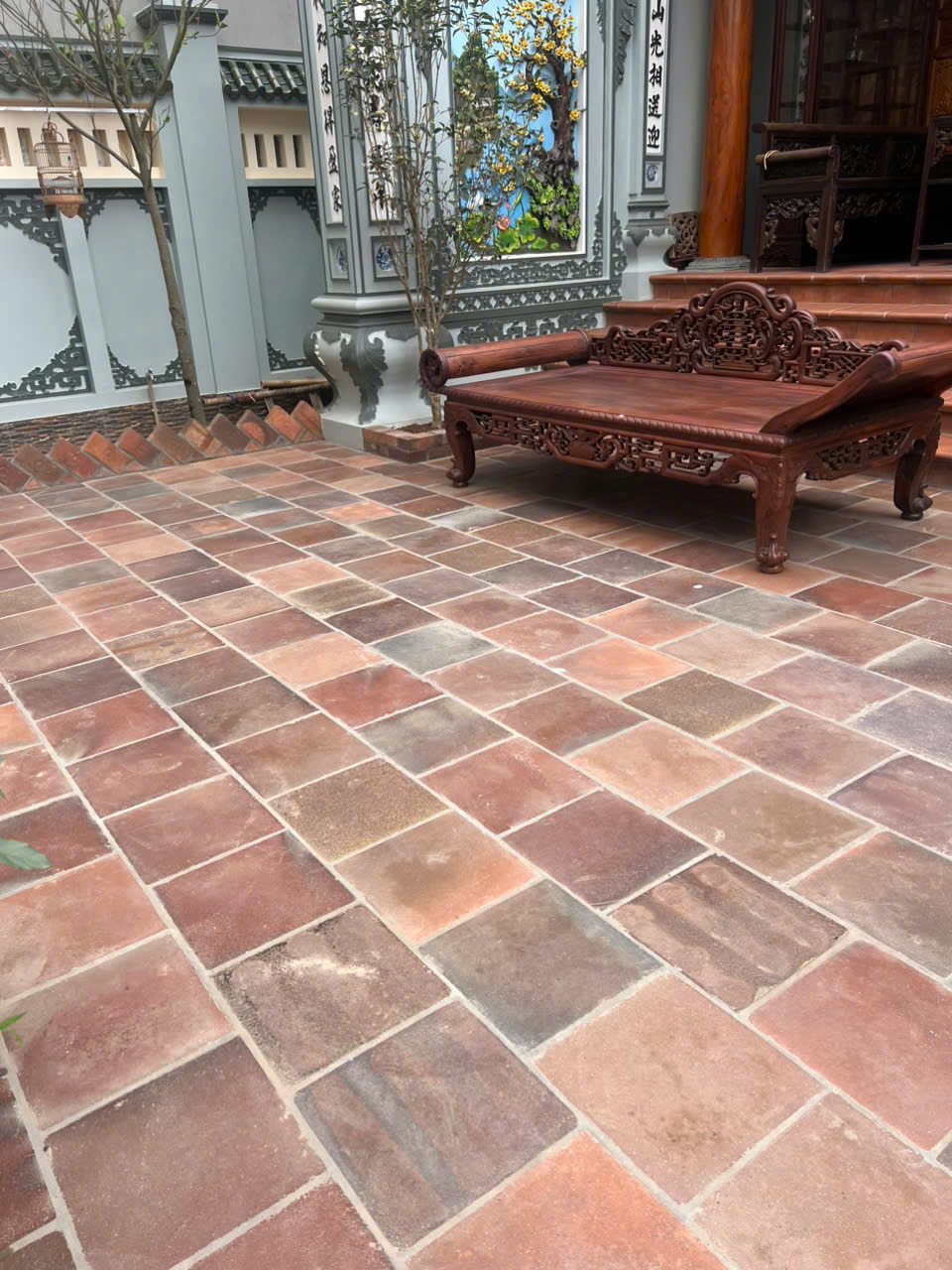 Với kết cấu dày 50mm, gạch có khả năng chịu lực tốt, độ bền cao, rất phù hợp cho các công trình mang kiến trúc cổ như nhà thờ họ, nhà cổ, từ đường, đình – chùa, sân biệt phủ, hay các không gian yêu cầu sự trang nghiêm và sang trọng.